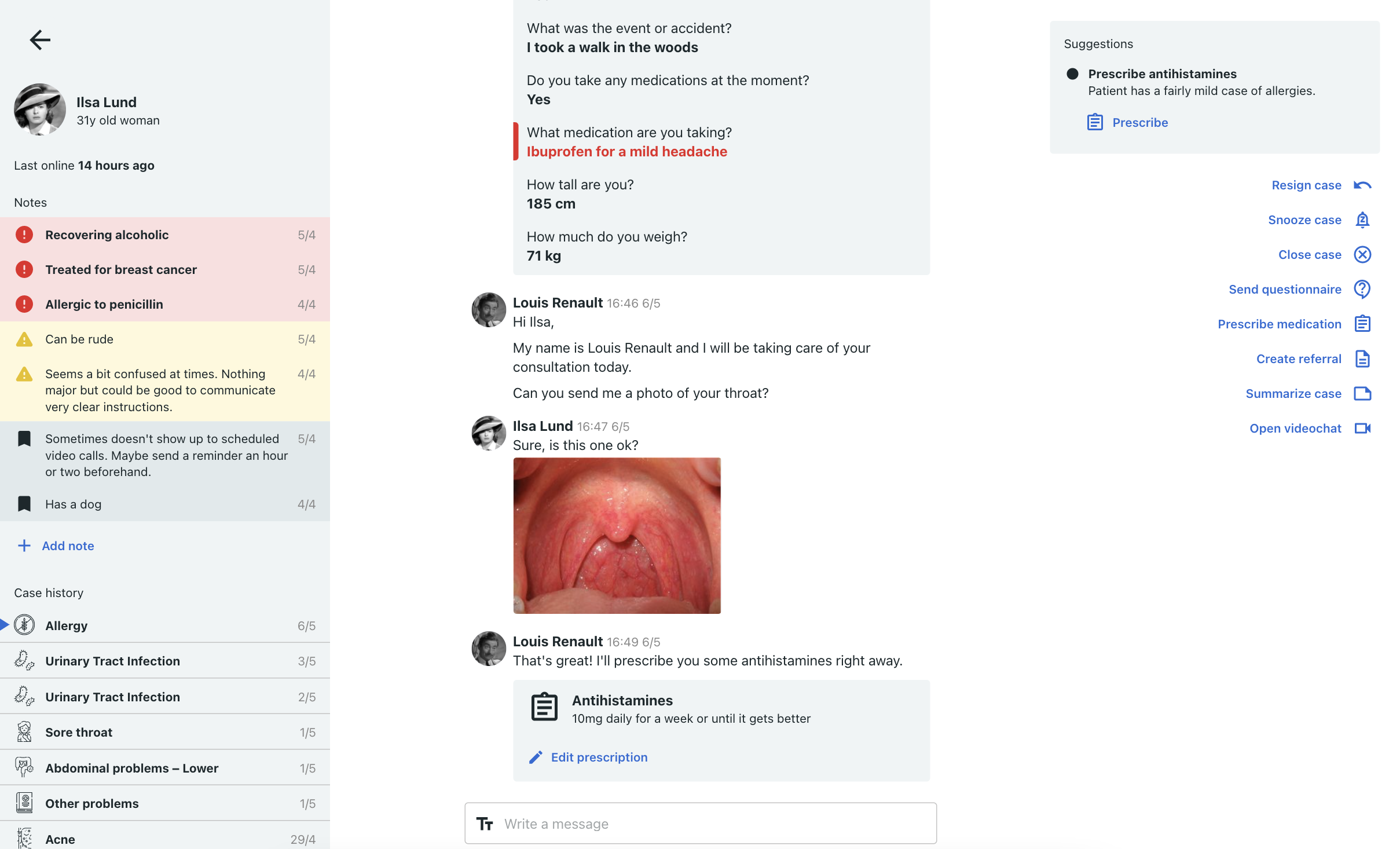 The next step is to make primary care asynchronous. Why limit ourselves to a 30 minute videochat? It seems much better to have the patient provide as much data as is needed upfront. If the case is not suitable for digital care then let the patient know right away and not waste everyones time. The doctor can then make an assessment in their own time, ask followup questions, request lab tests or consult colleagues. Lastly the patient can get a conclusion to their case, be it a diagnosis, a prescription or good advice.